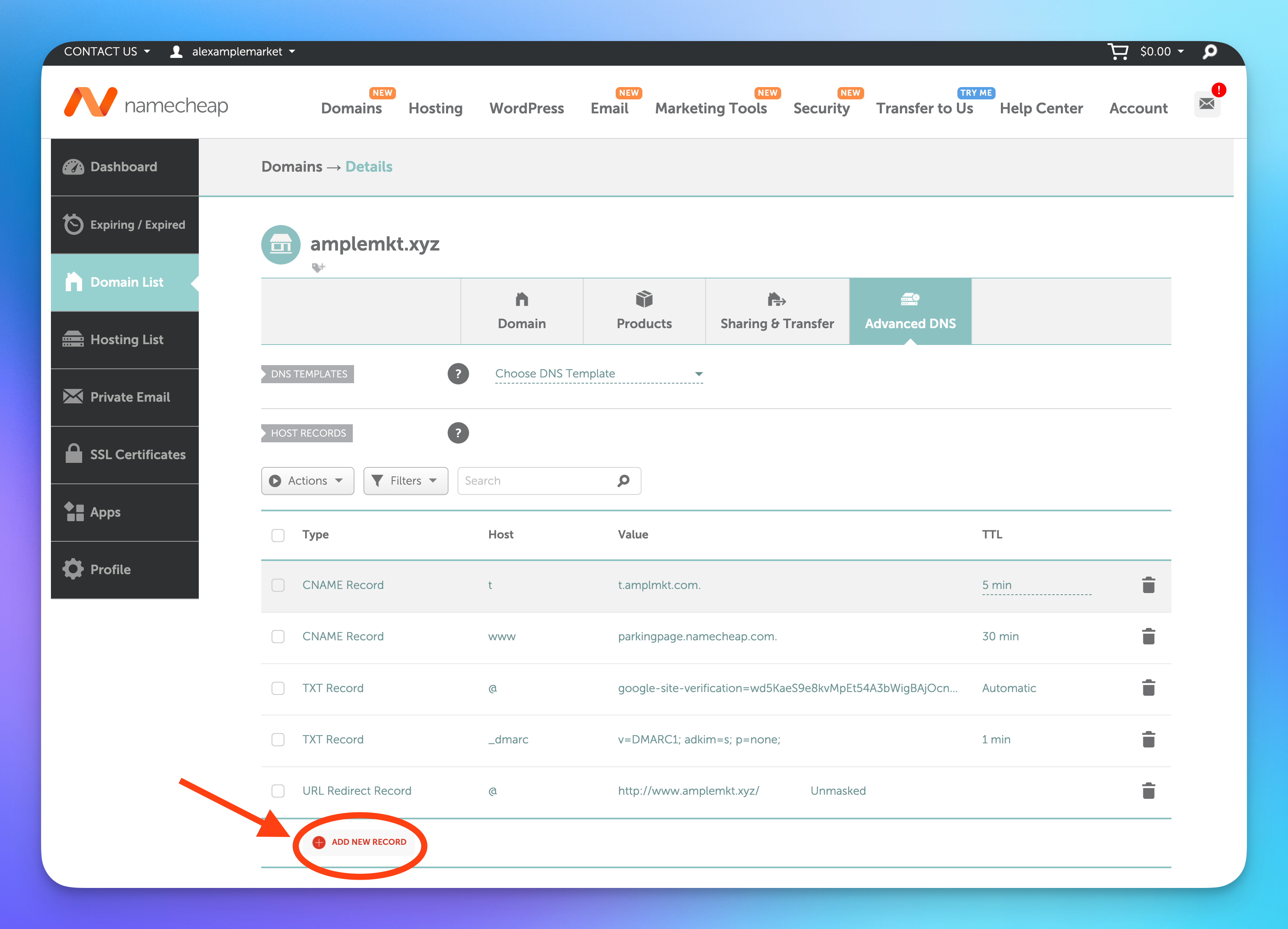 Step 1: Find your Domain DNS management page on Namecheap.com