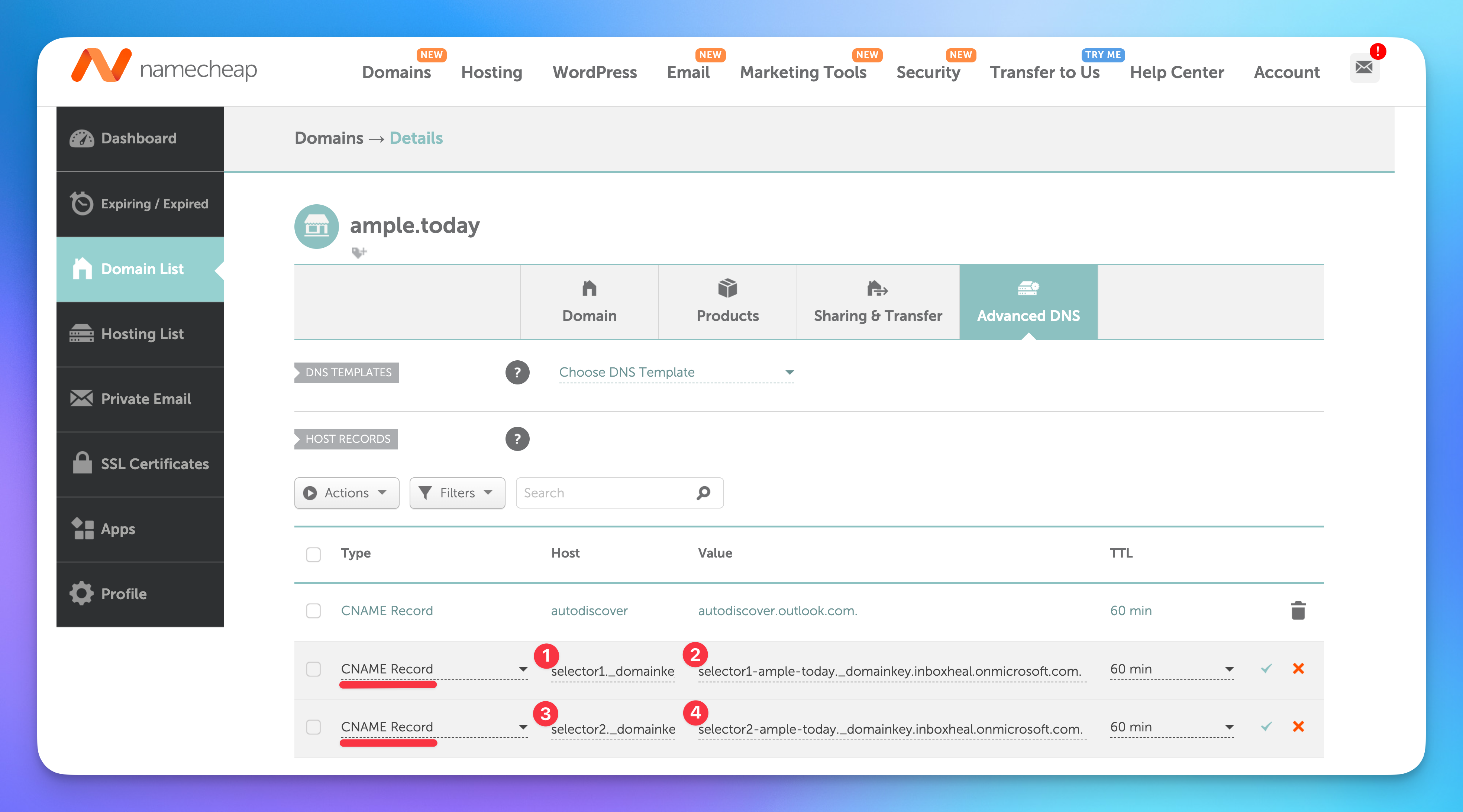 2. Add them as new CNAME records in Namecheap's DNS management page that you opened earlier.
