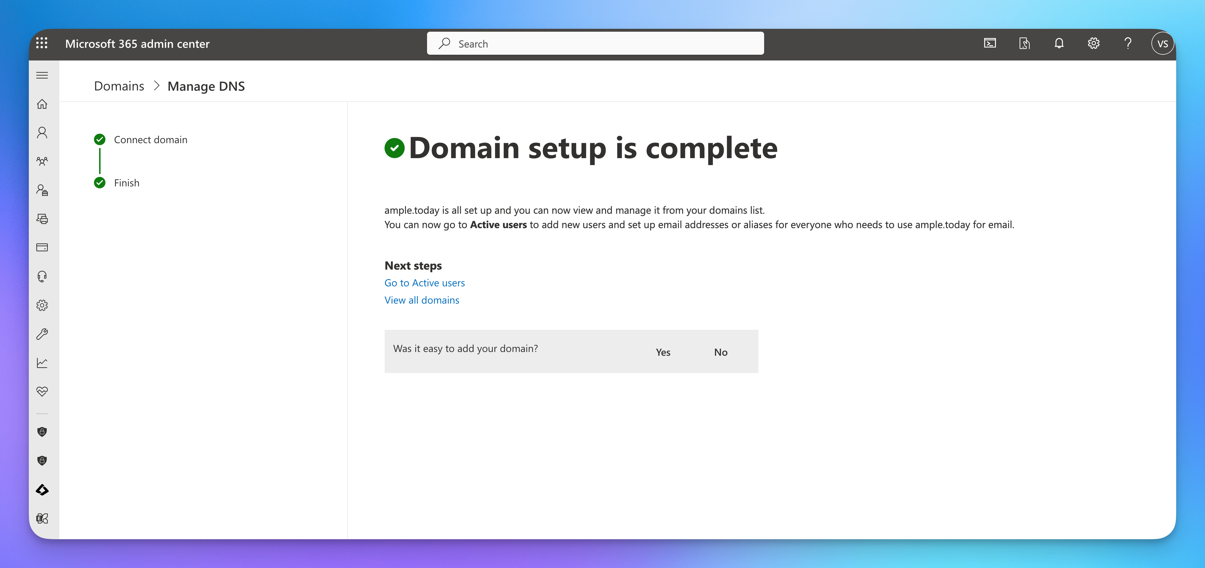 3. Go back to Microsoft's admin panel and press the Continue button to complete the setup