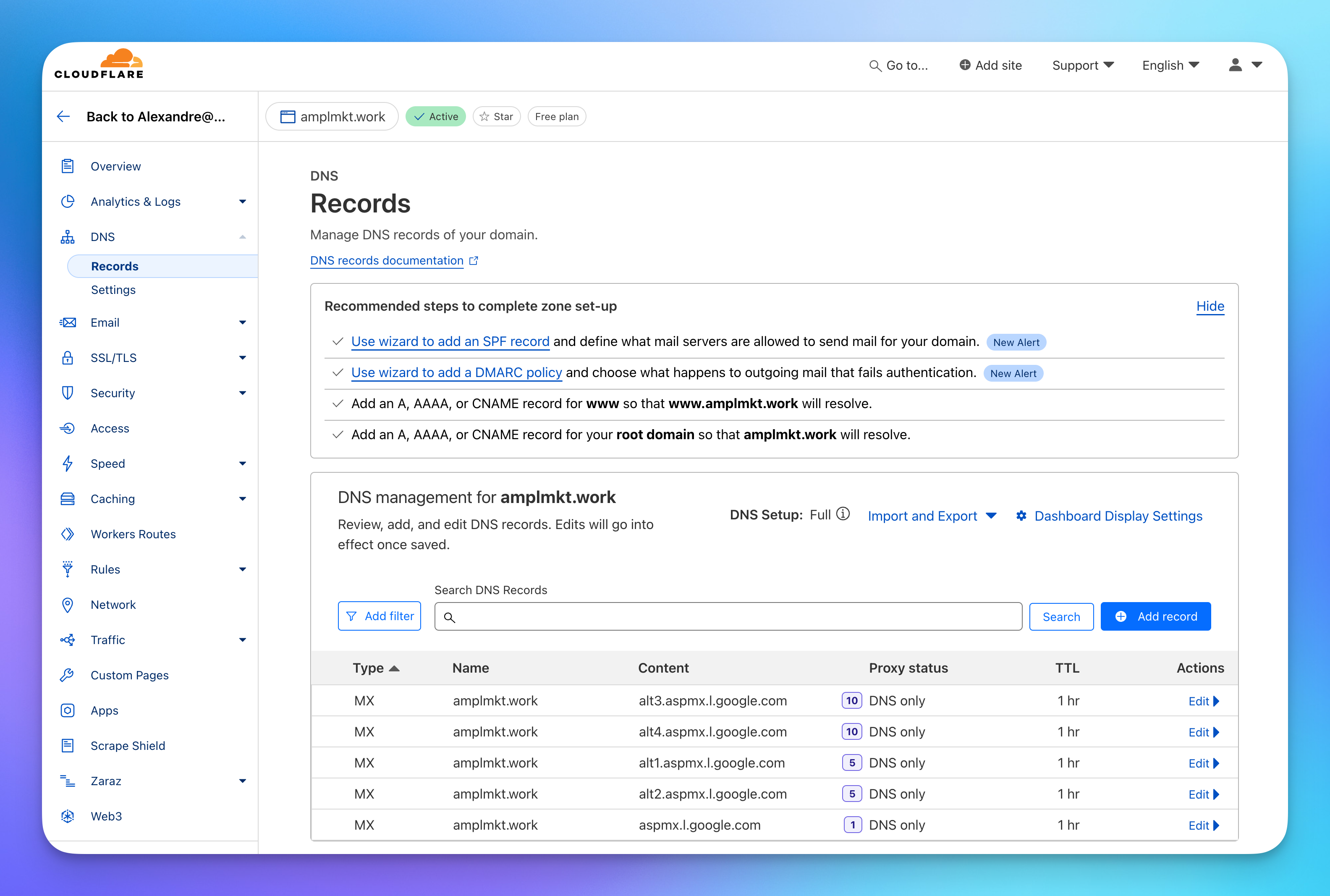 - Add them as new CNAME records in Cloudflare's DNS management page that you opened earlier.