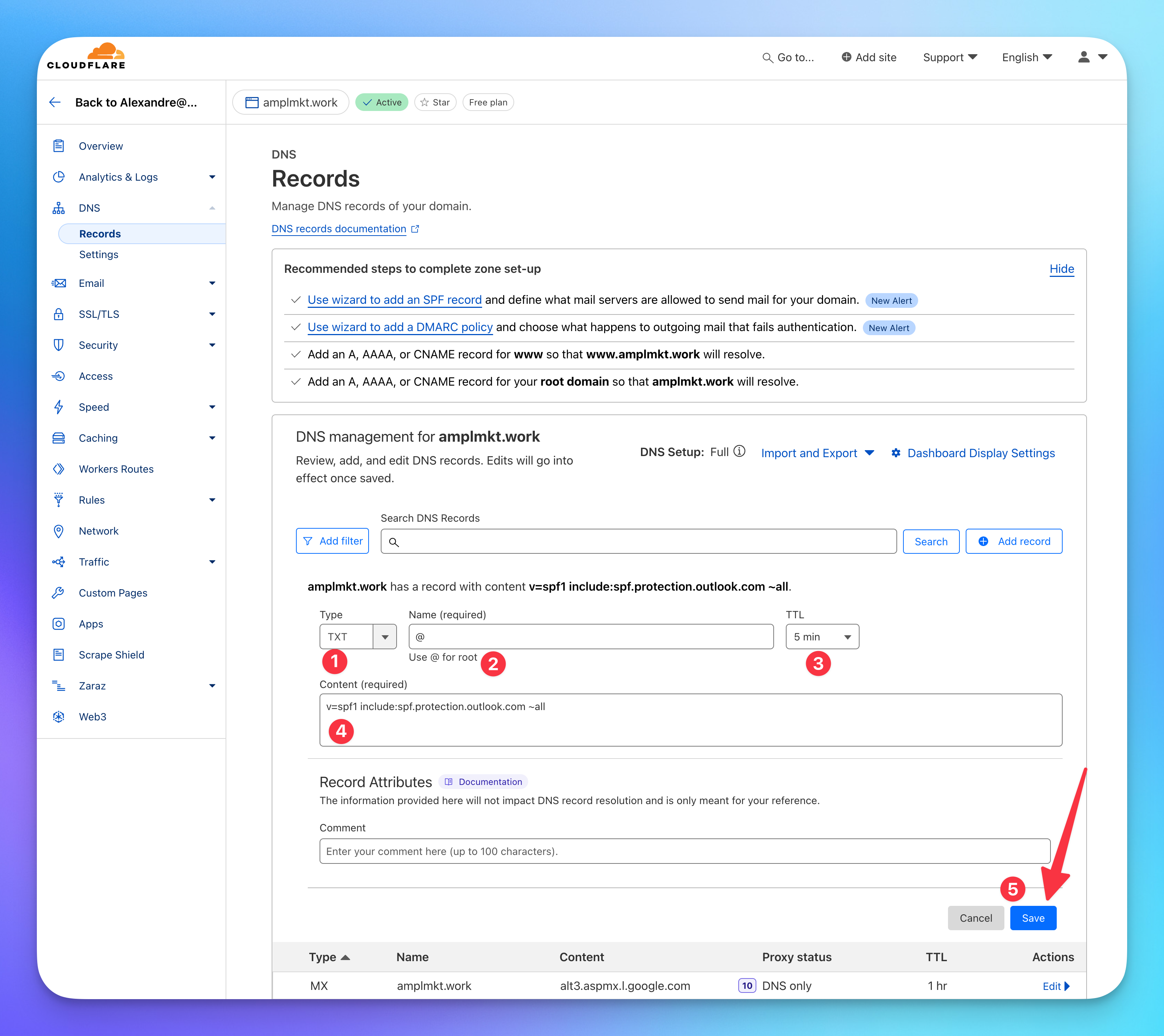 - Add the new SPF record and save changes