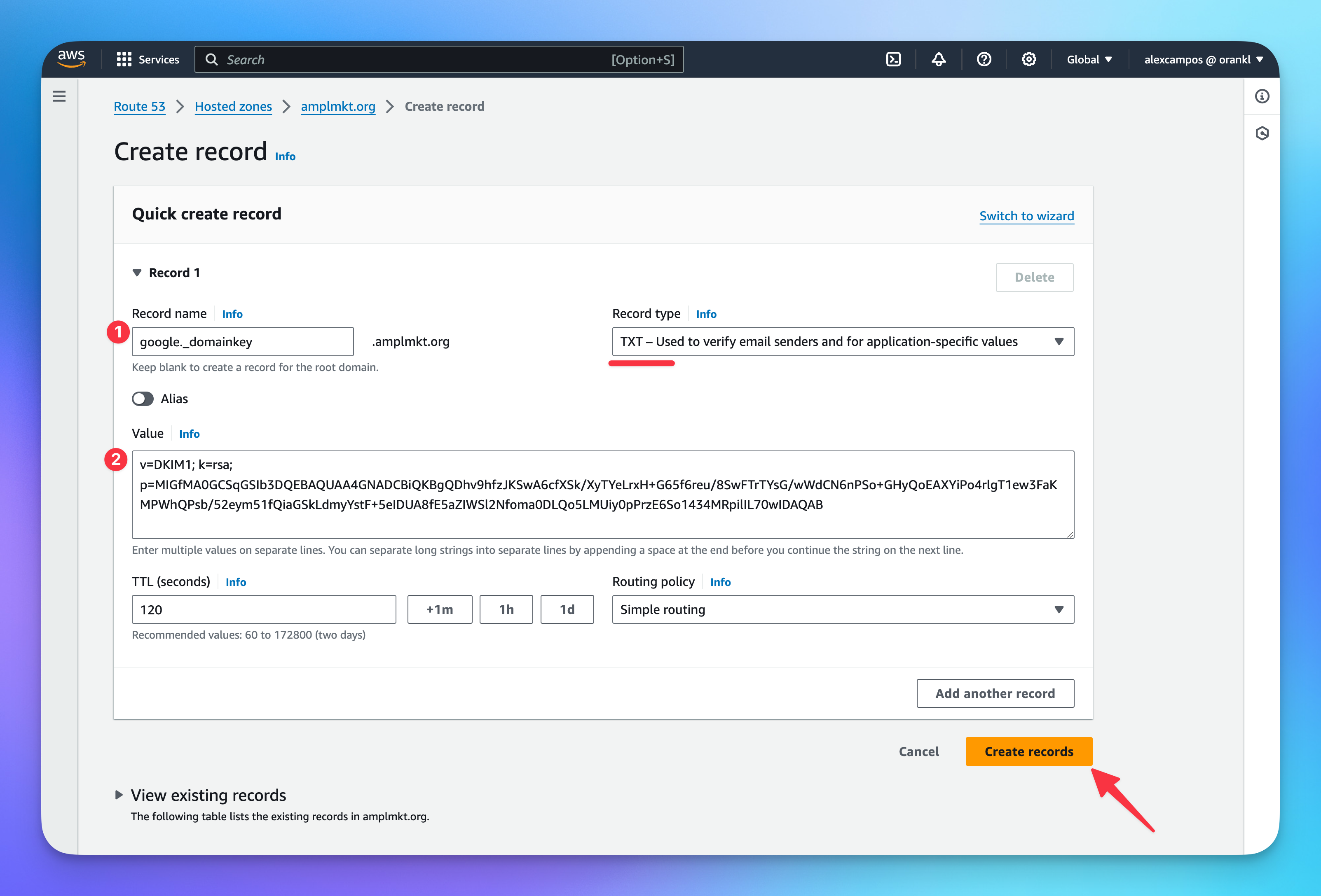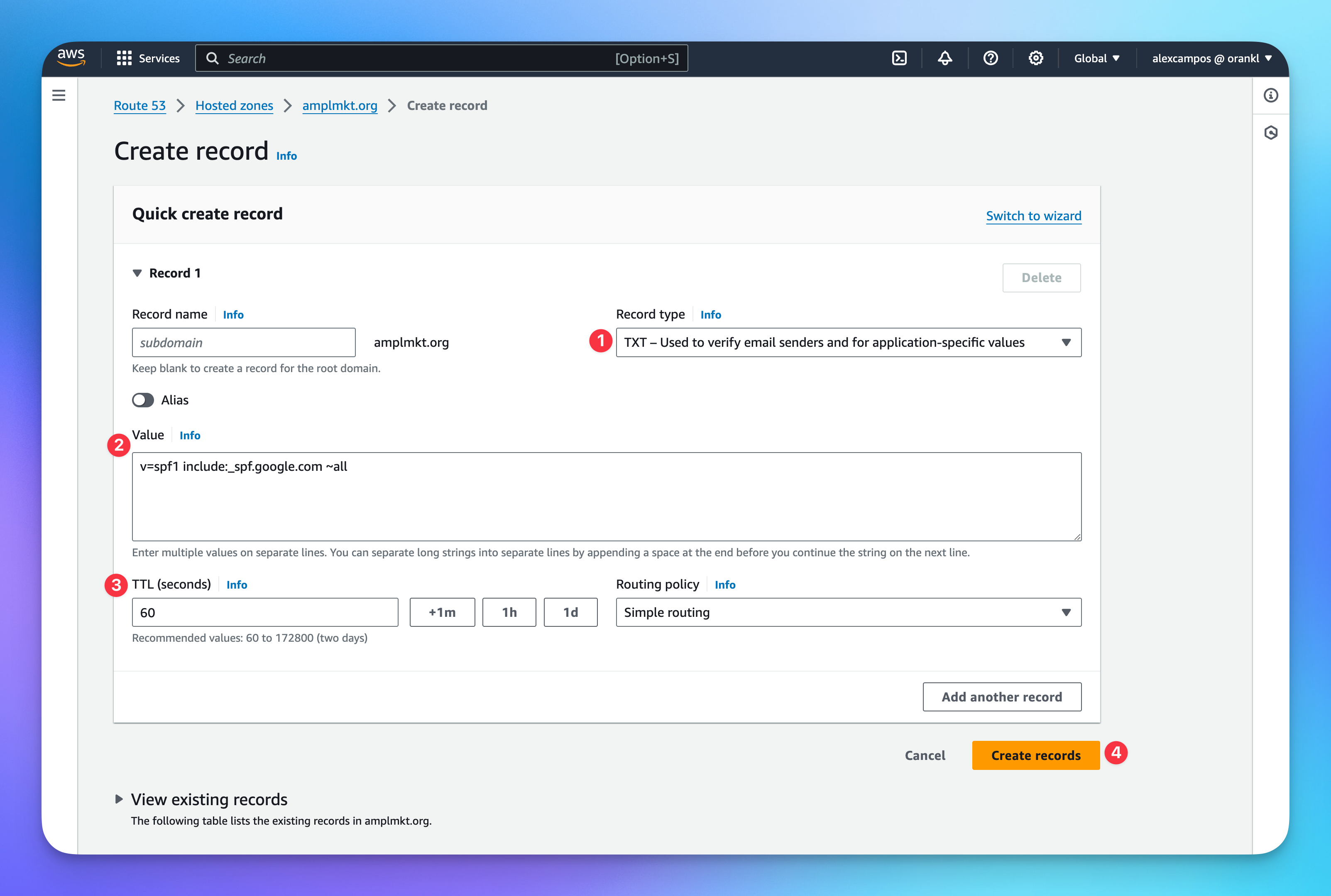 - Copy record from Google Workspace to Amazon's DNS settings page