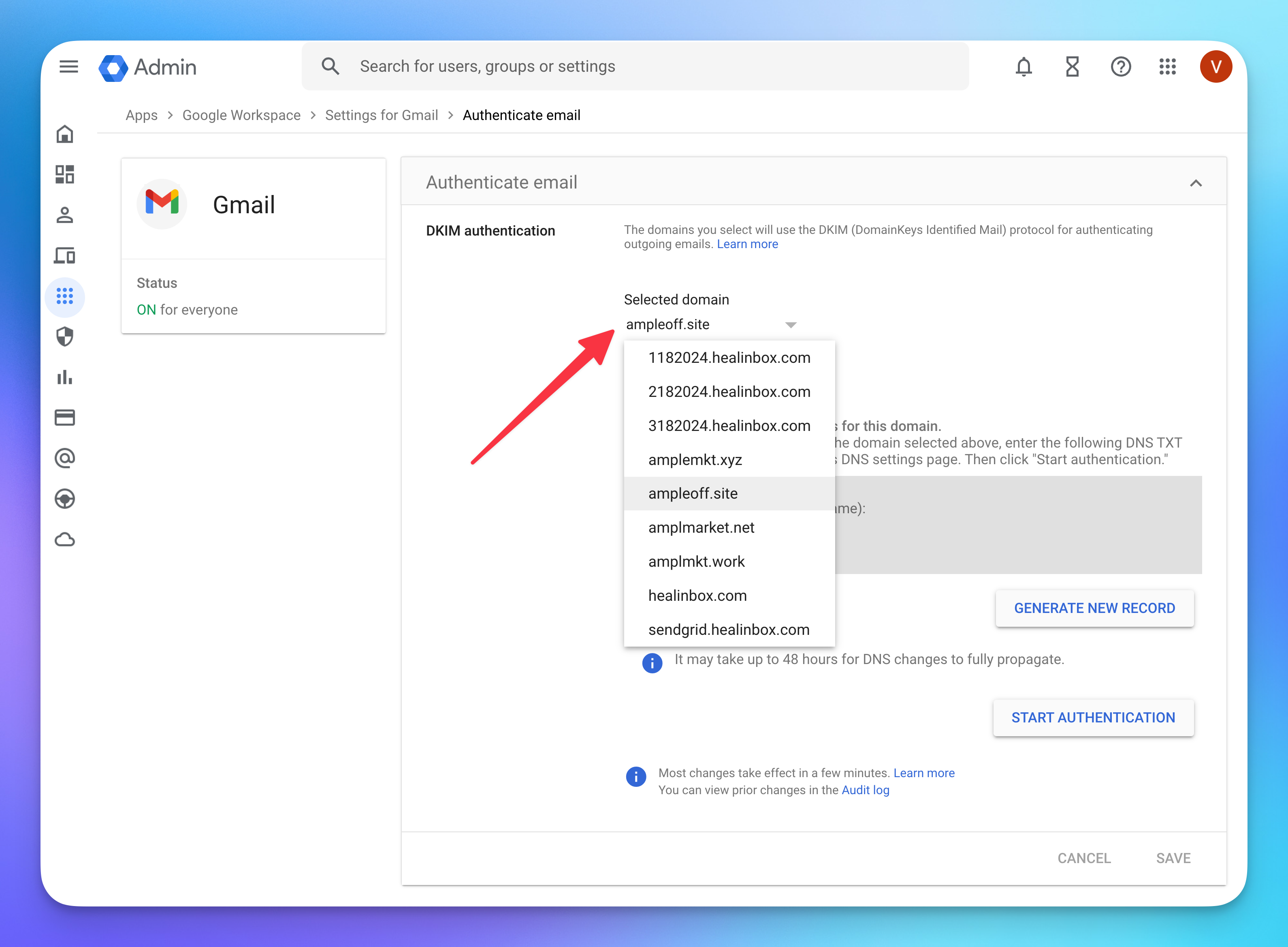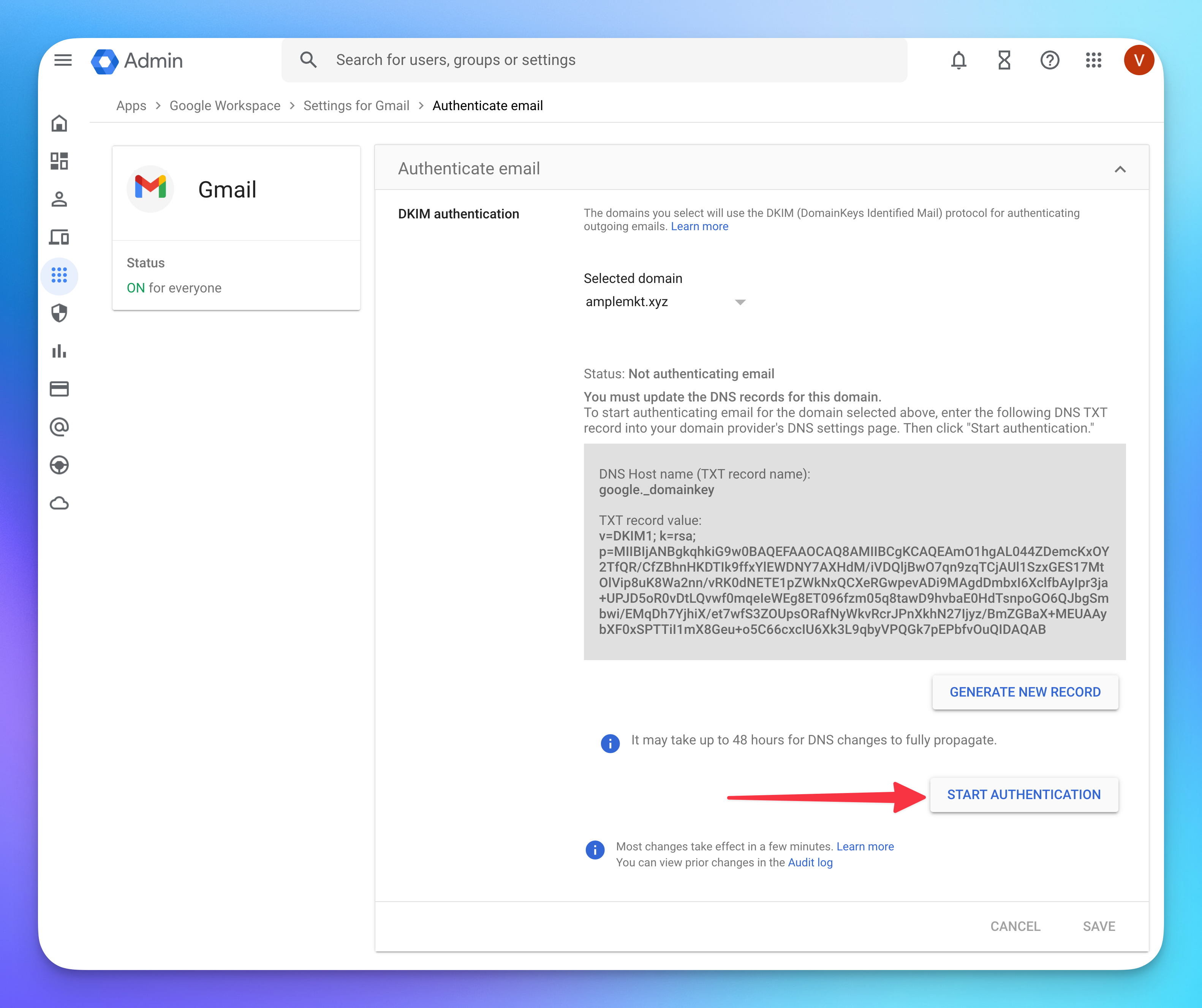 1. Go to your Google Workspace Admin Panel - DKIM Authentication page