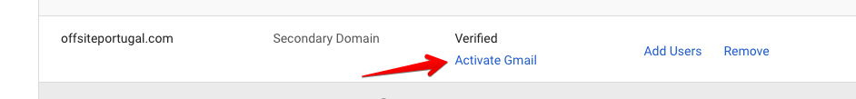 If your Domain’s MX Records are not configured, you should be able to click on “Activate Gmail”