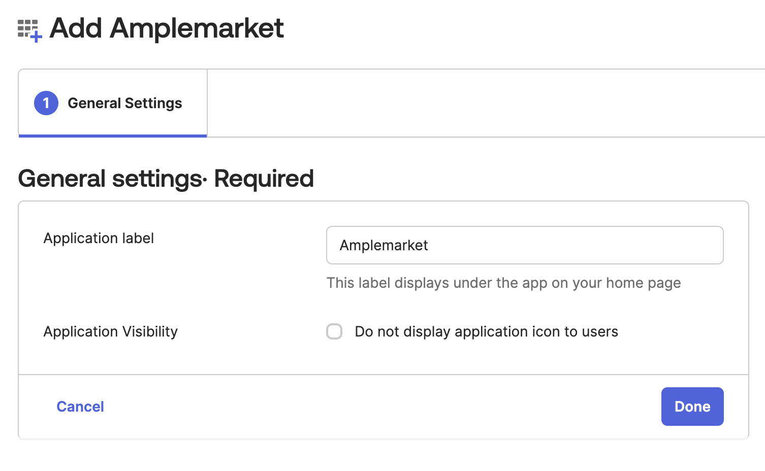 Select “Done” unless you wish to change the name of the Application away from the default of “Amplemarket