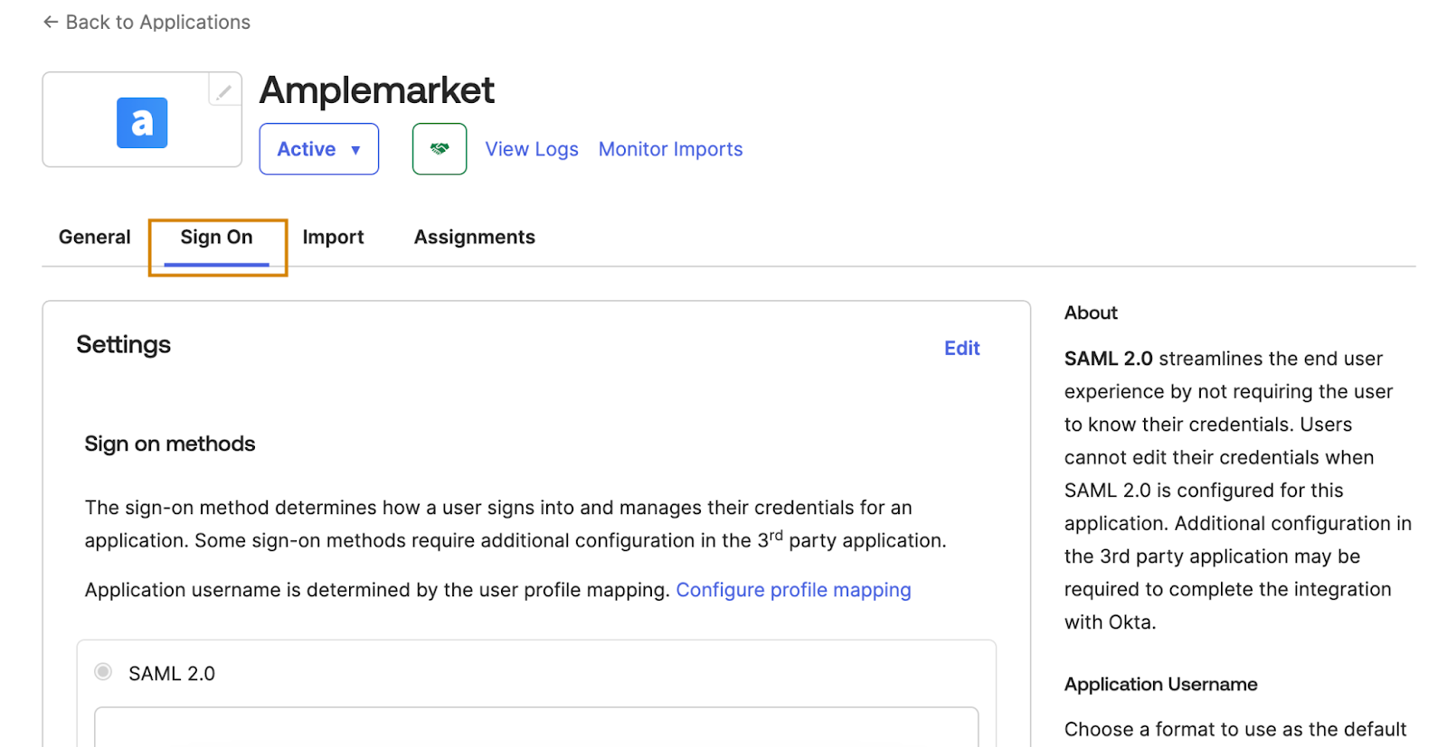 Setting up Authentication for Amplemarket in Okta SSO