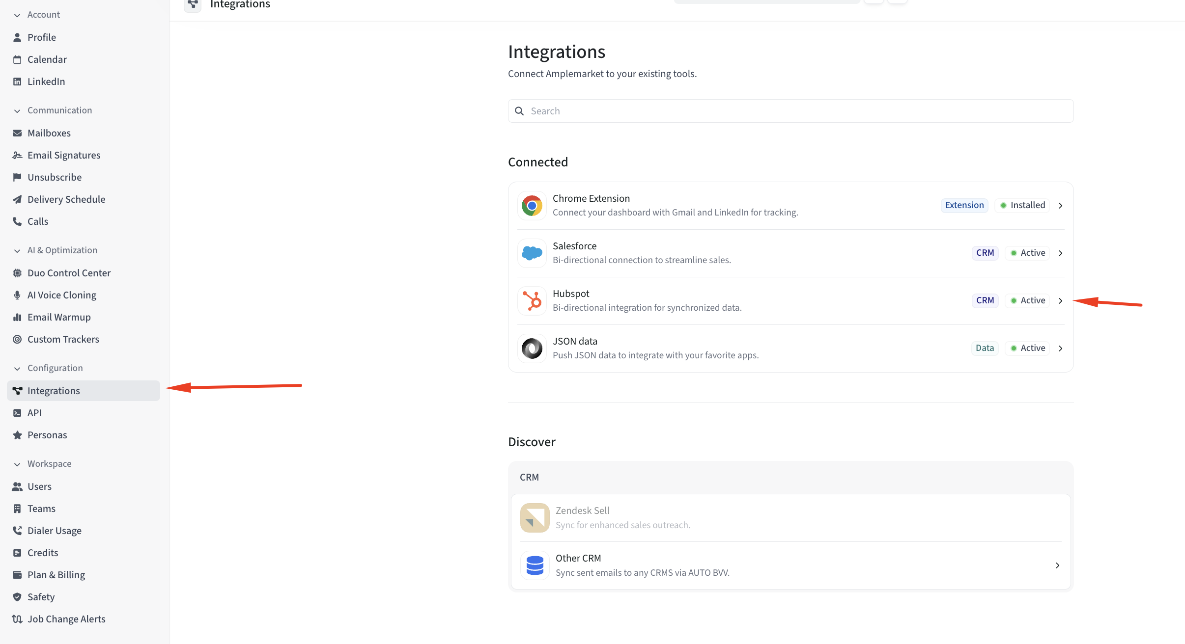 An Amplemarket admin can integrate your Amplemarket account with Hubspot by going to Account Settings--> scroll down to System Preferences --> Integrations. Find Hubspot on the list of integrations and click connect.